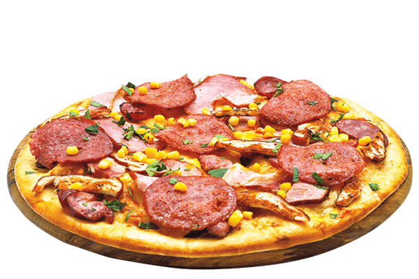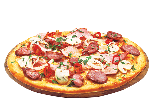 Ingredients: Pepperoni, mushrooms, sausage, pizza sauce, and mozzarella cheese.