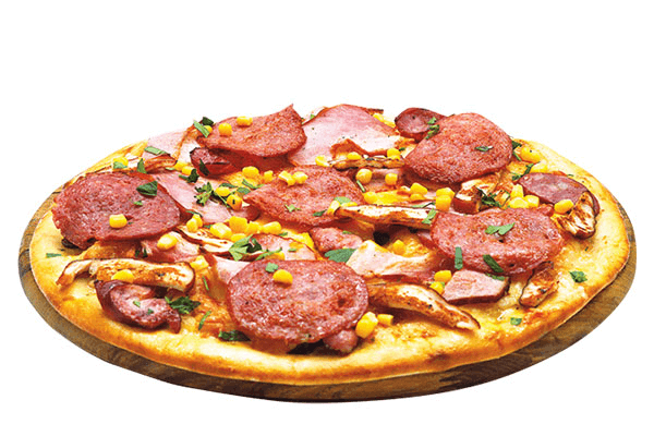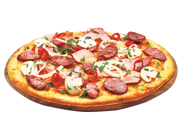 Ingredients: Pepperoni, mushrooms, sausage, pizza sauce, and mozzarella cheese.